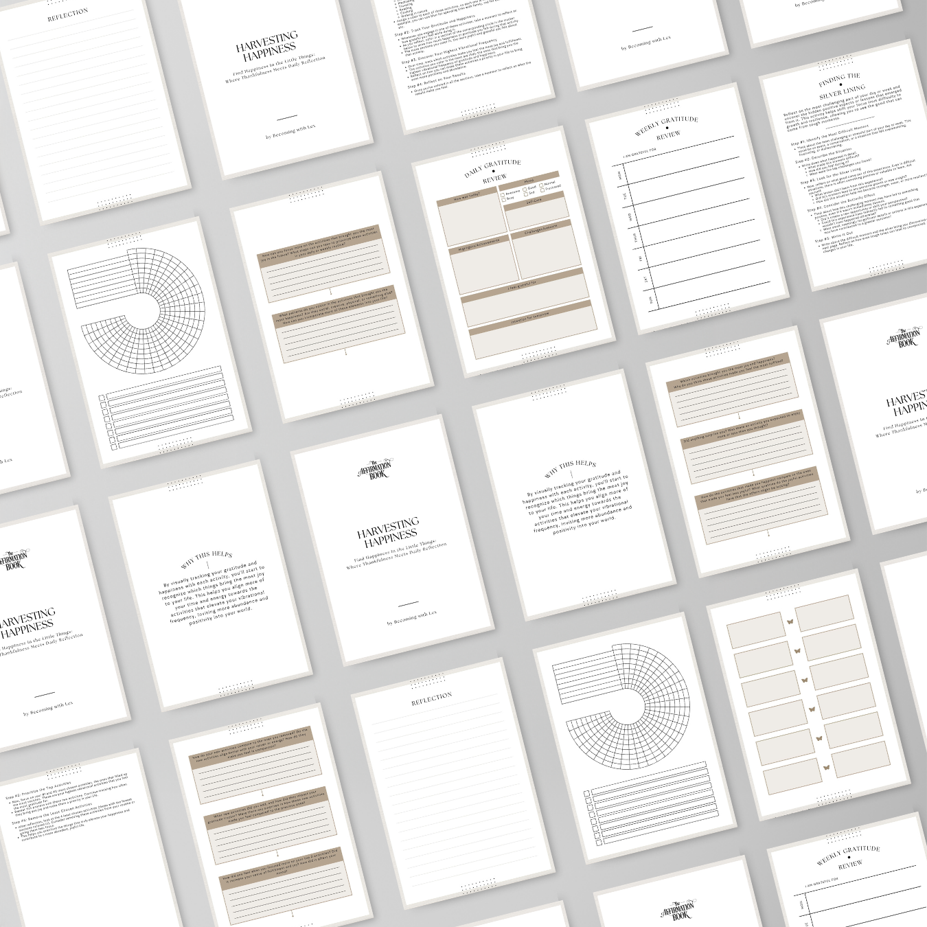 Discover the art of finding joy in the everyday with Harvesting Happiness, a thoughtfully designed digital gratitude journal and workbook. This unique journal is your personal guide to cultivating a mindset of thankfulness, boosting your positivity, and creating space for daily reflection.